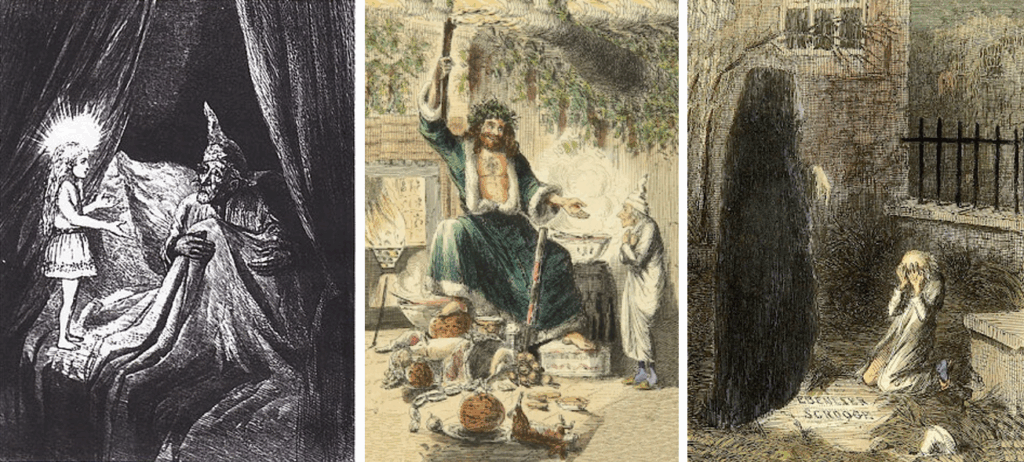 PERCEPTION OF FUTURE EVENTS: The Ghost of Christmas Future, reminiscent of the Grim Reaper, reveals to Scrooge how his possessions will be stolen by unpaid servants who hate him. Scrooge is devastated seeing the Cratchits mourn Tiny Tim, who died because his family couldn’t afford better living conditions and medical care. Scrooge is haunted by his callous words about how the poor should die and “decrease the surplus population.”