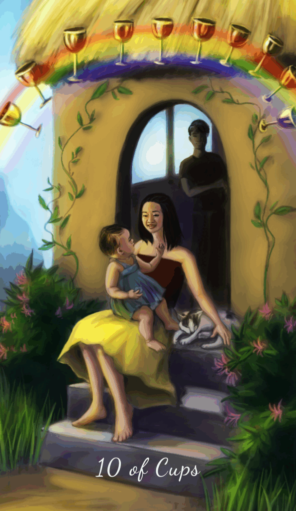10 of Cups – Completion in love doesn’t mean the journey ends; it evolves. This card reminds you that all relationships ebb and flow, and expecting emotional perfection may be creating unnecessary pressure. Allow love to be cyclical and imperfect. Let go of the idea that you must have everything together to be worthy. You are deeply loved as you are.